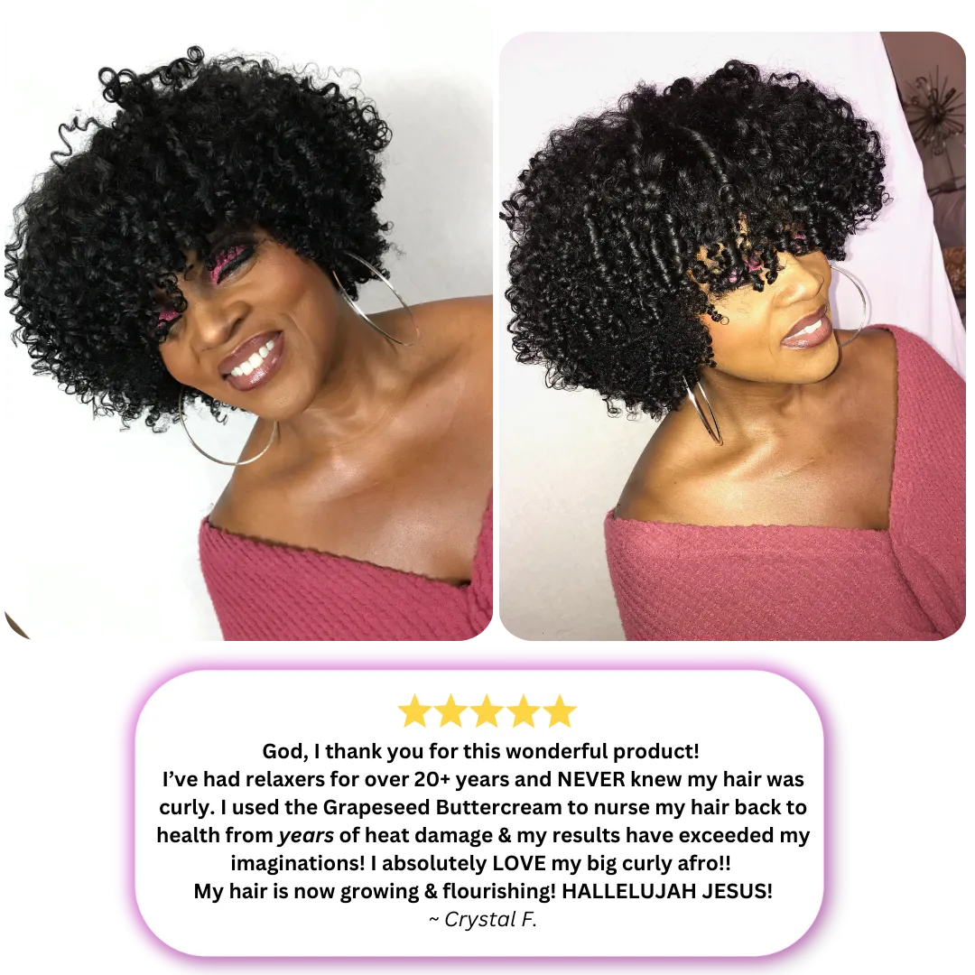 – Grapeseed oil, shea butter, and natural botanicals help prevent breakage.